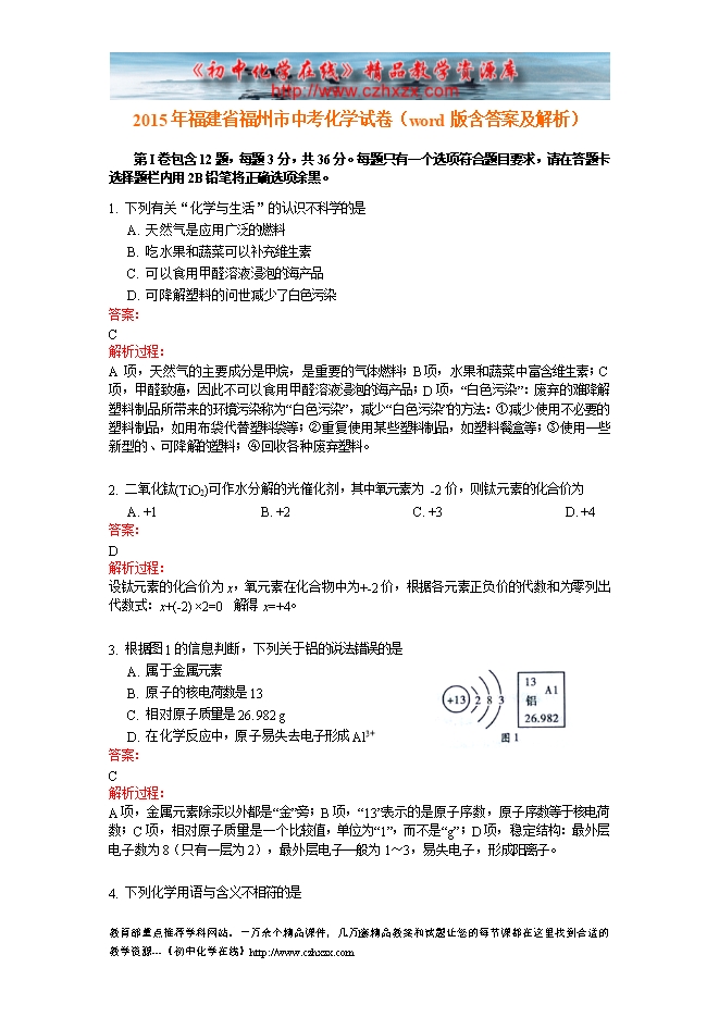 2015年福建省福州市中考化学试卷(word版含答案及解析)