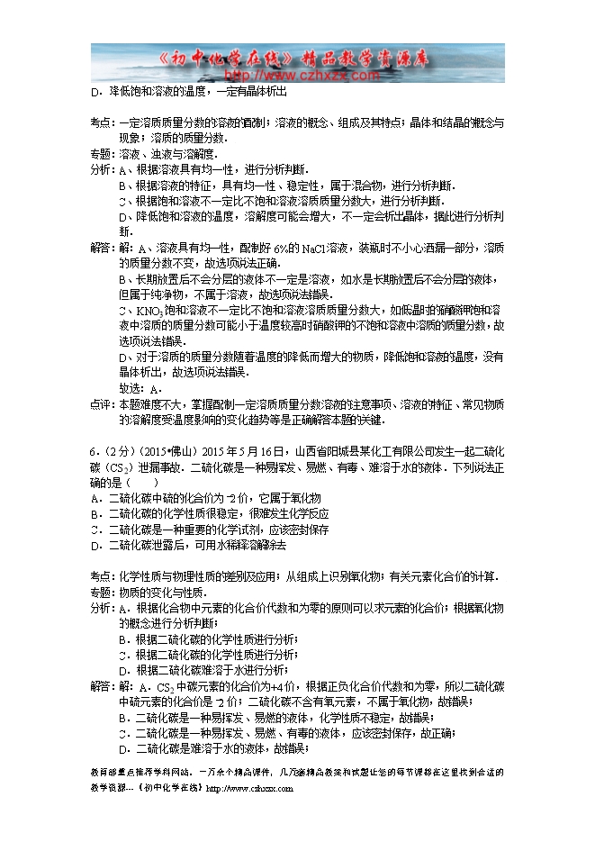 所属专辑: 《2015年各省市中考化学真题》专辑