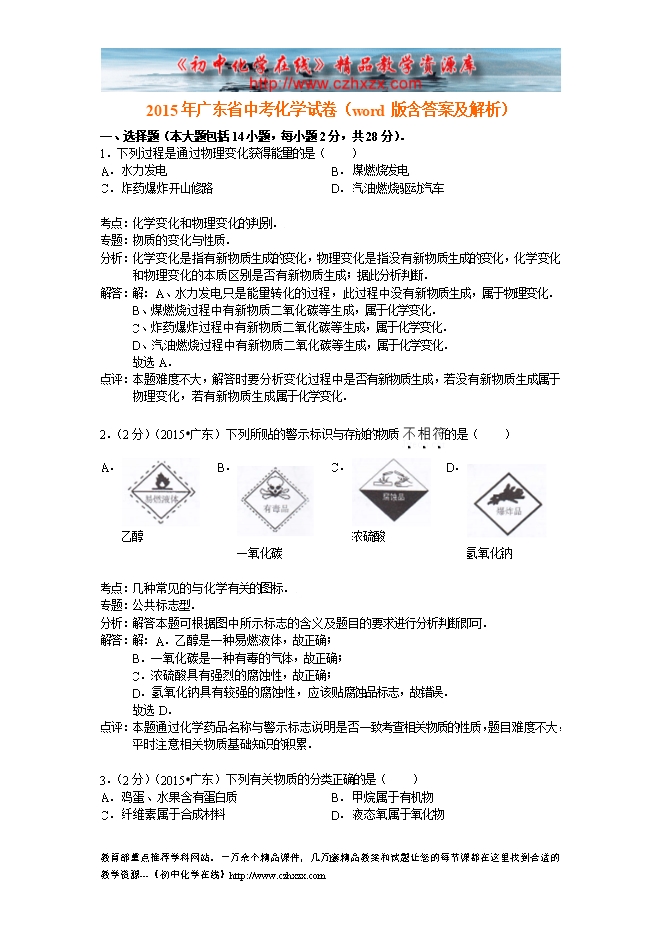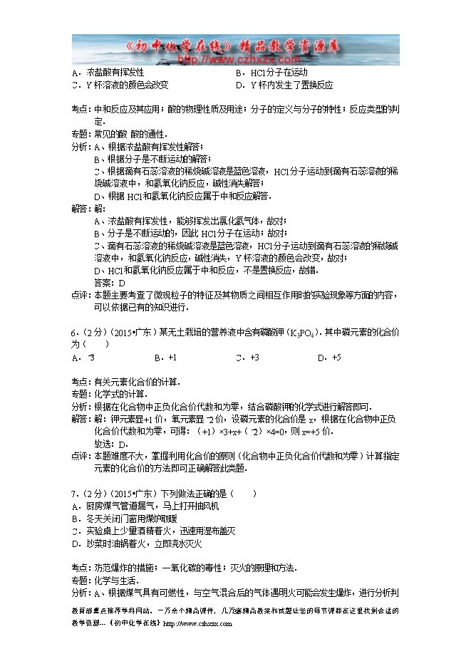 所属专辑: 《2015年各省市中考化学真题》专辑