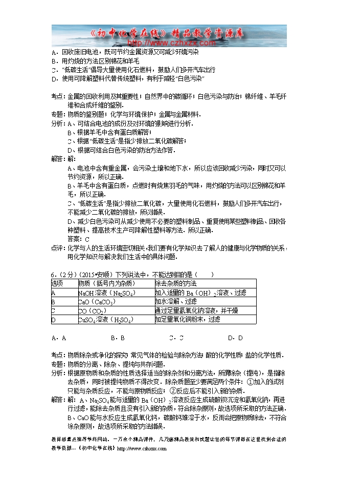 所属专辑: 《2015年各省市中考化学真题》专辑