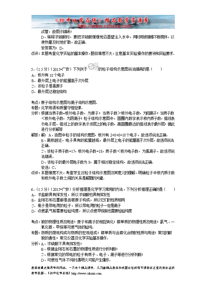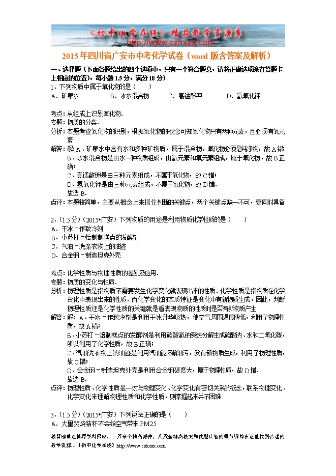2015年四川省广安市中考化学试卷(word版含答案及解析)