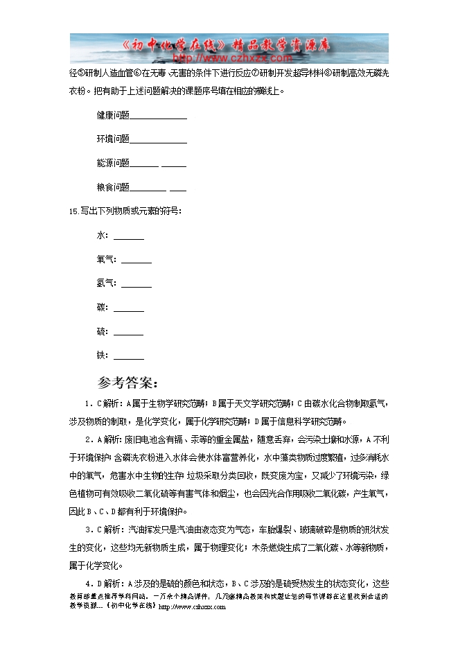 - 下一份试卷:鲁教版《第一单元第二节 体验化学探究》测试题及答案