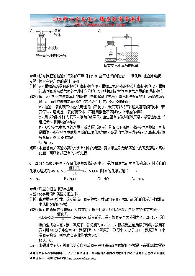 所属专辑: 《2015年各省市中考化学真题》专辑
