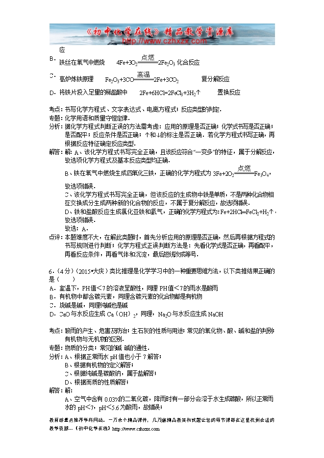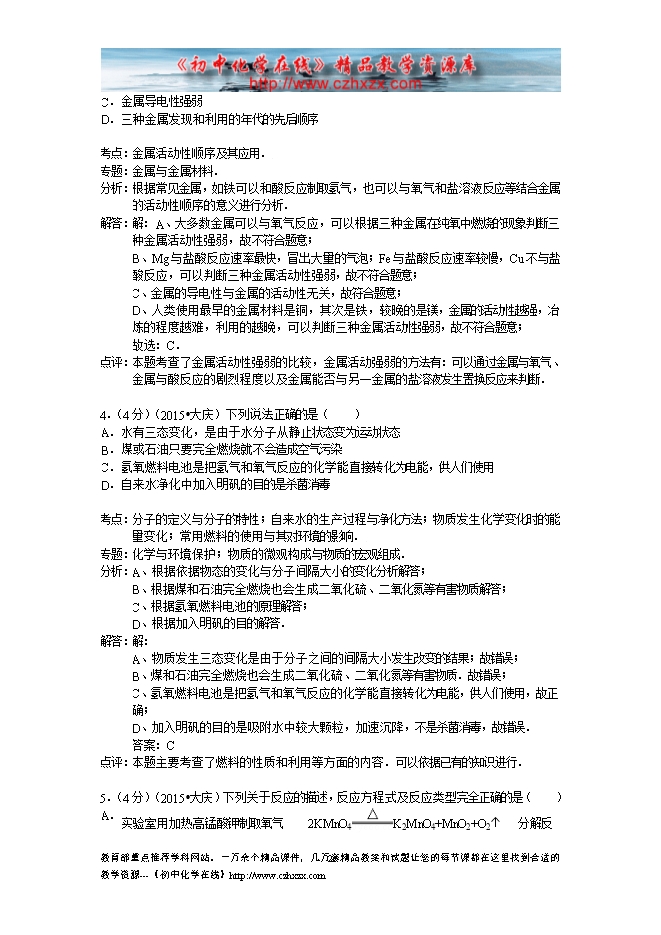 所属专辑: 《2015年各省市中考化学真题》专辑