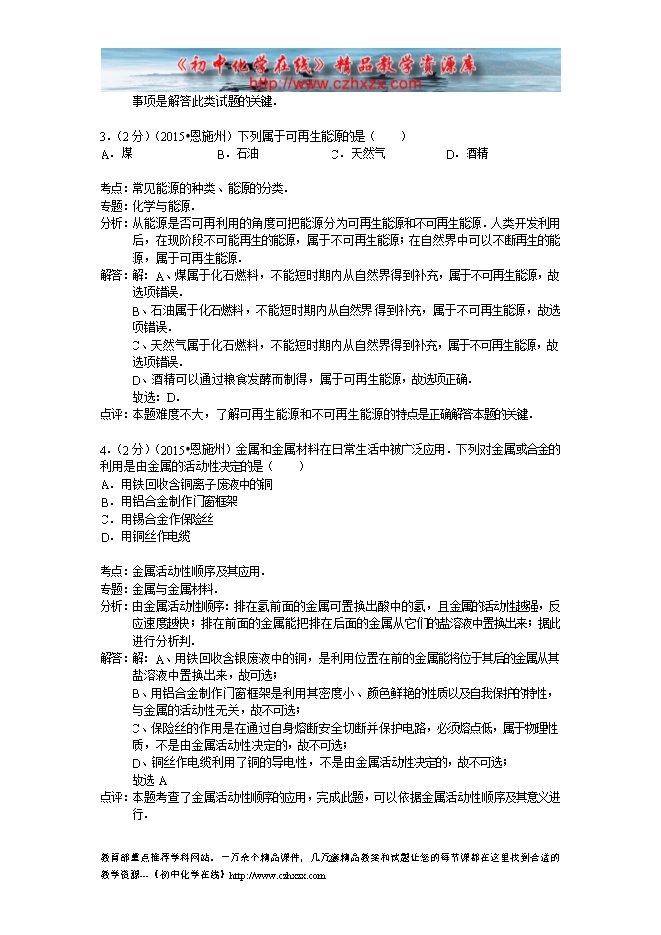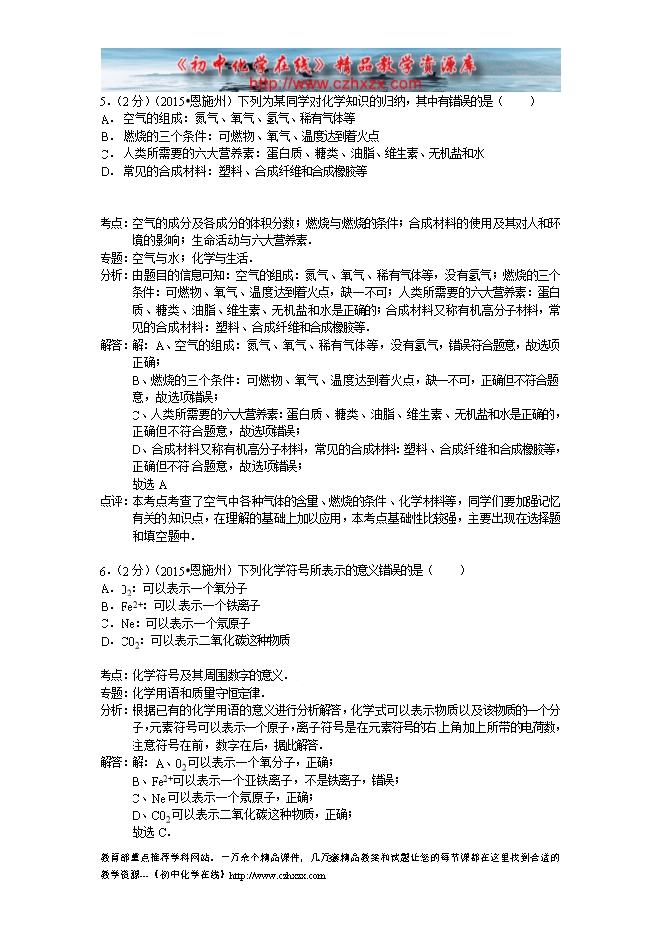 所属专辑: 《2015年各省市中考化学真题》专辑