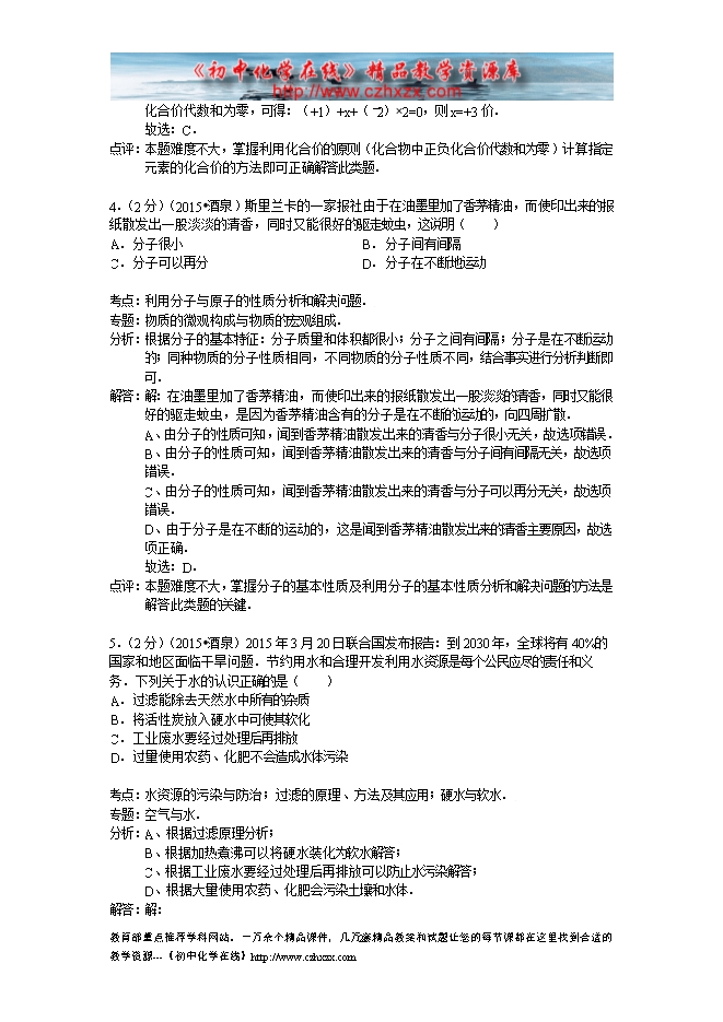 所属专辑: 《2015年各省市中考化学真题》专辑