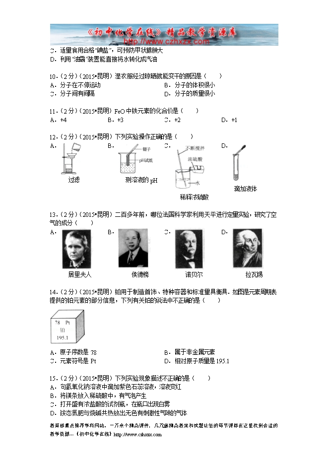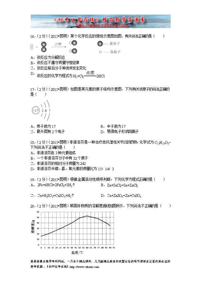 所属专辑: 《2015年各省市中考化学真题》专辑