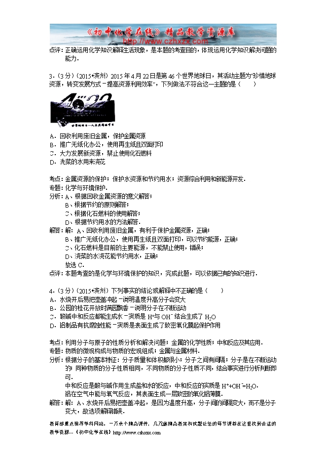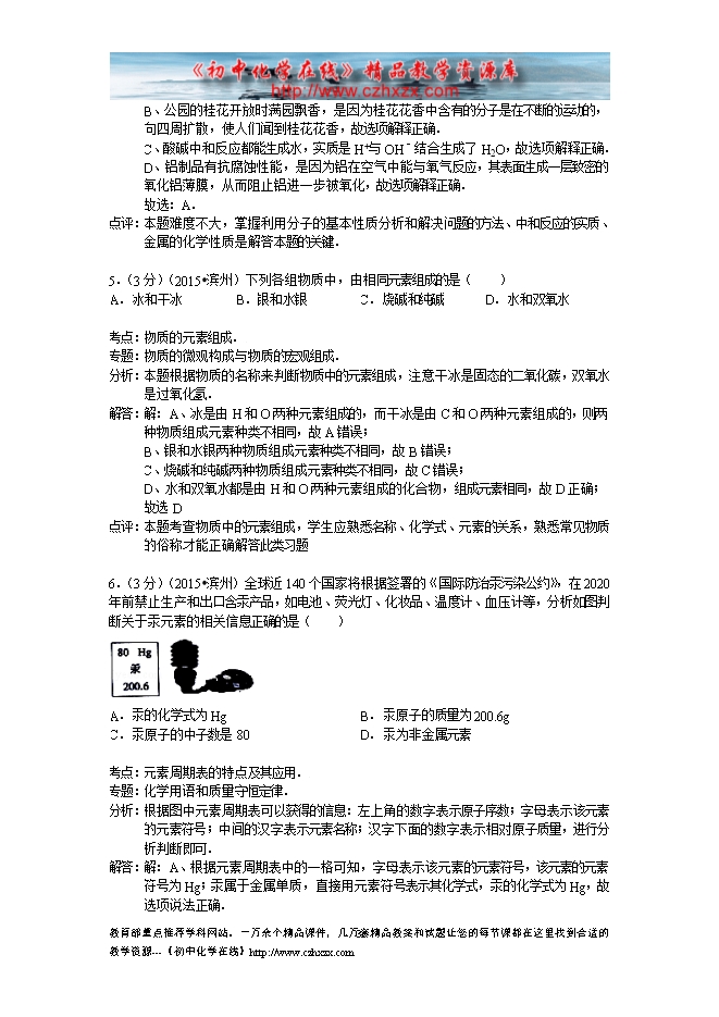 所属专辑: 《2015年各省市中考化学真题》专辑