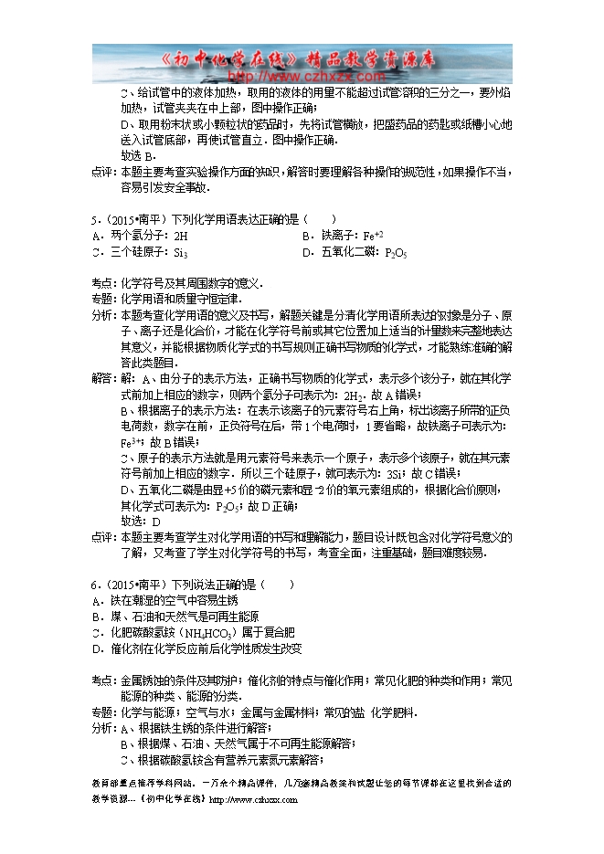 所属专辑: 《2015年各省市中考化学真题》专辑