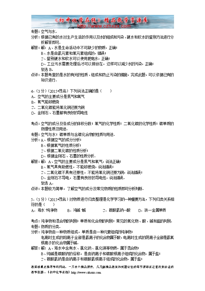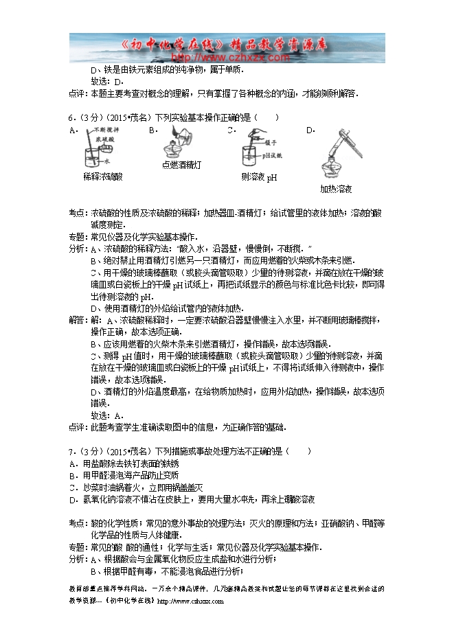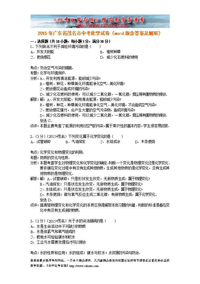2015年广东省茂名市中考化学试卷(word版含答案及解析)