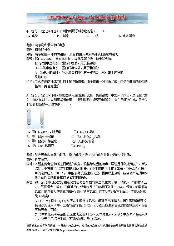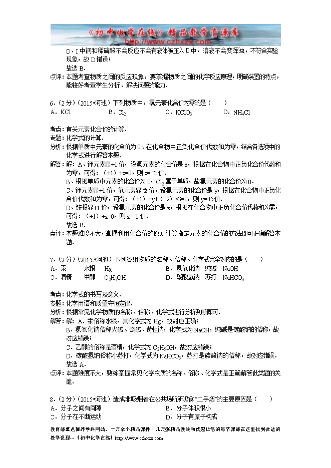 所属专辑: 《2015年各省市中考化学真题》专辑