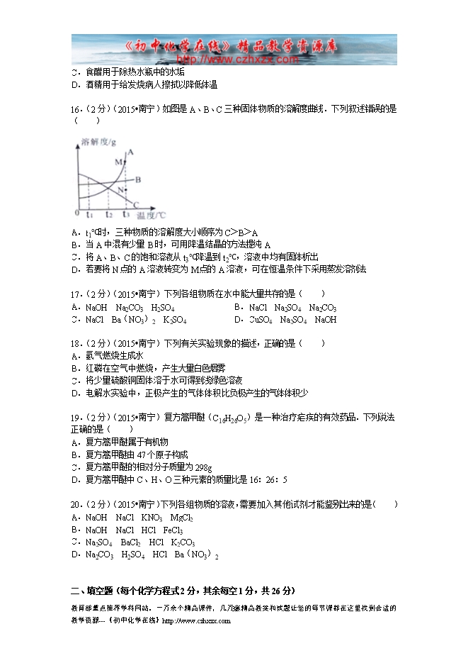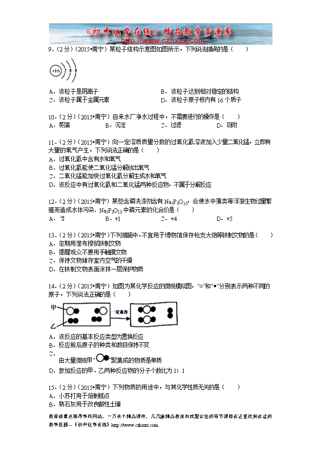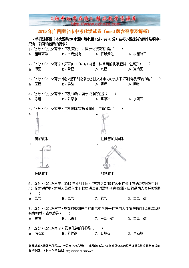 2015年广西南宁市中考化学试卷(word版含答案及解析)