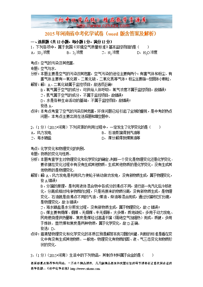 所属专辑: 《2015年各省市中考化学真题》专辑