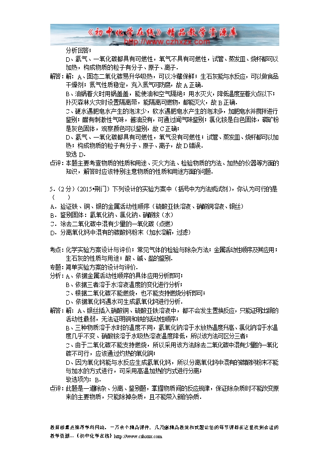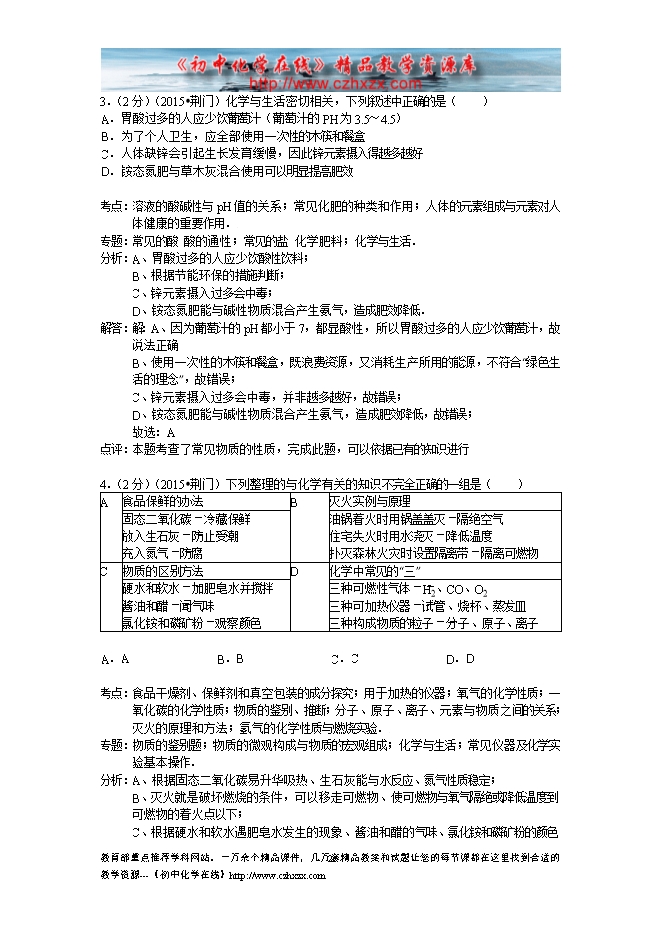 所属专辑: 《2015年各省市中考化学真题》专辑