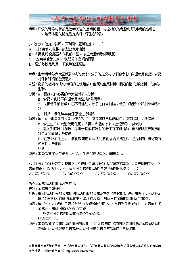 所属专辑: 《2015年各省市中考化学真题》专辑