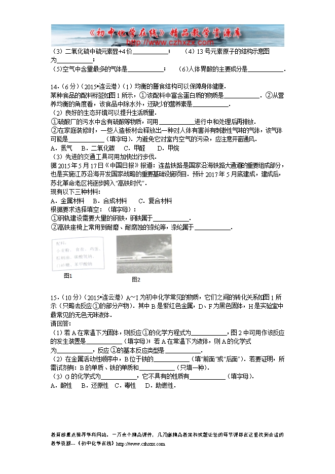 所属专辑: 《2015年各省市中考化学真题》专辑