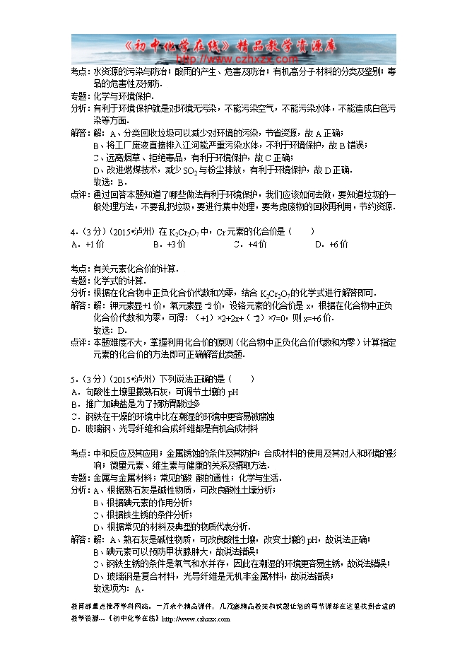 所属专辑: 《2015年各省市中考化学真题》专辑