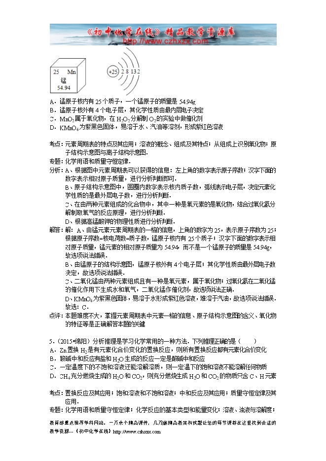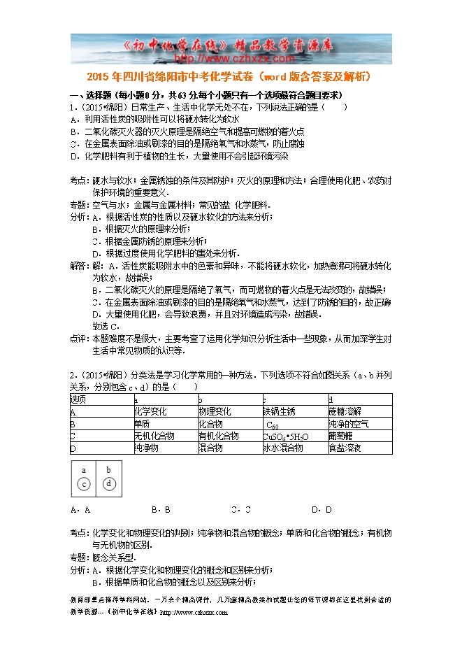 2015年四川省绵阳市中考化学试卷(word版含答案及解析)