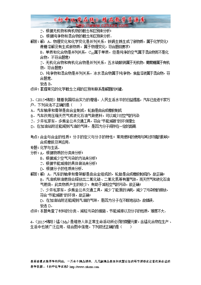 所属专辑: 《2015年各省市中考化学真题》专辑