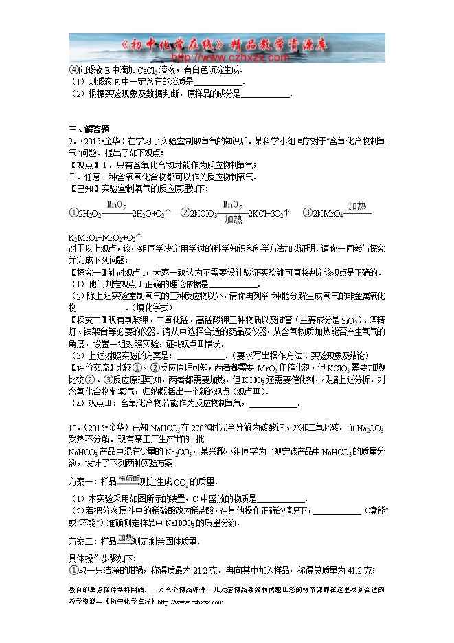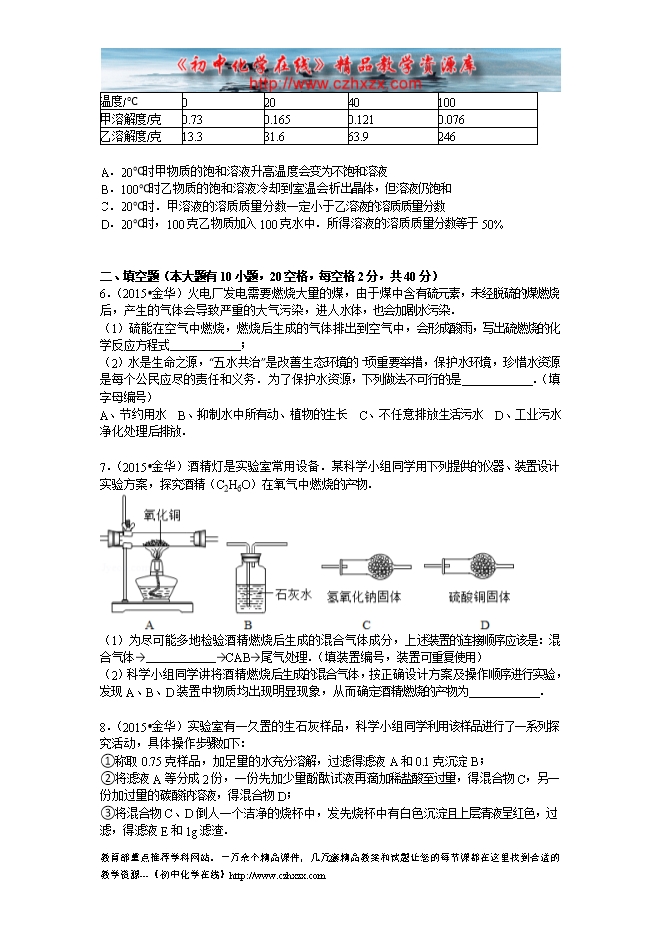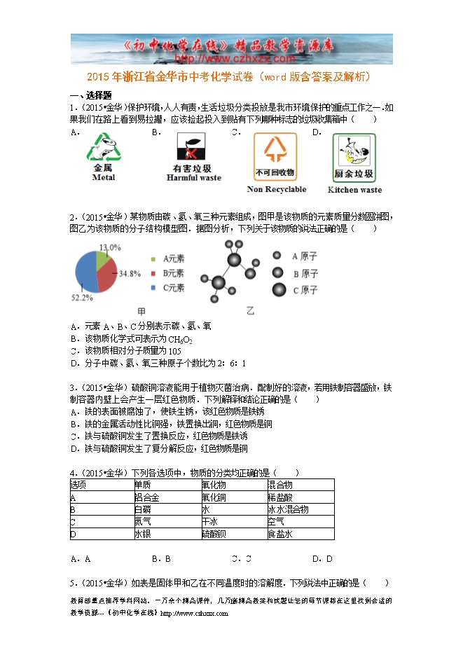2015年浙江省金华市中考化学试卷(word版含答案及解析)