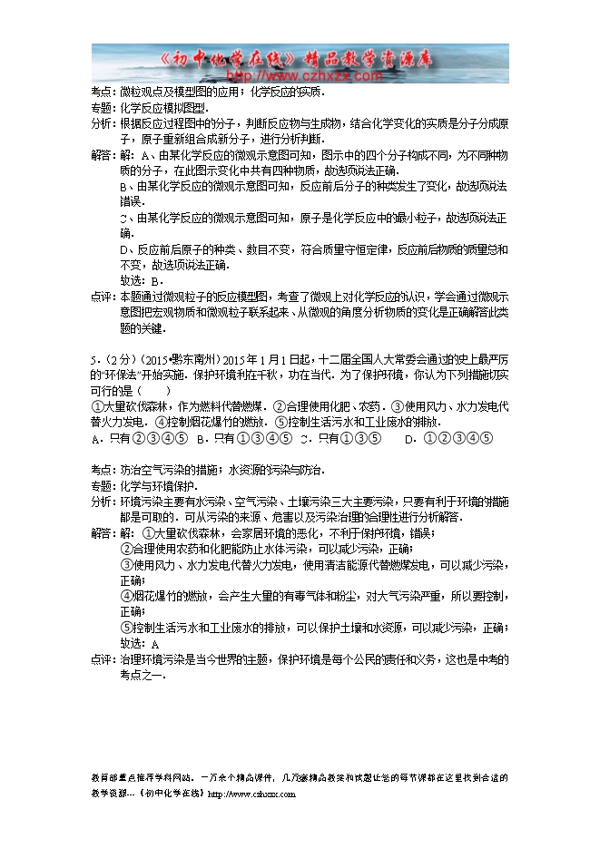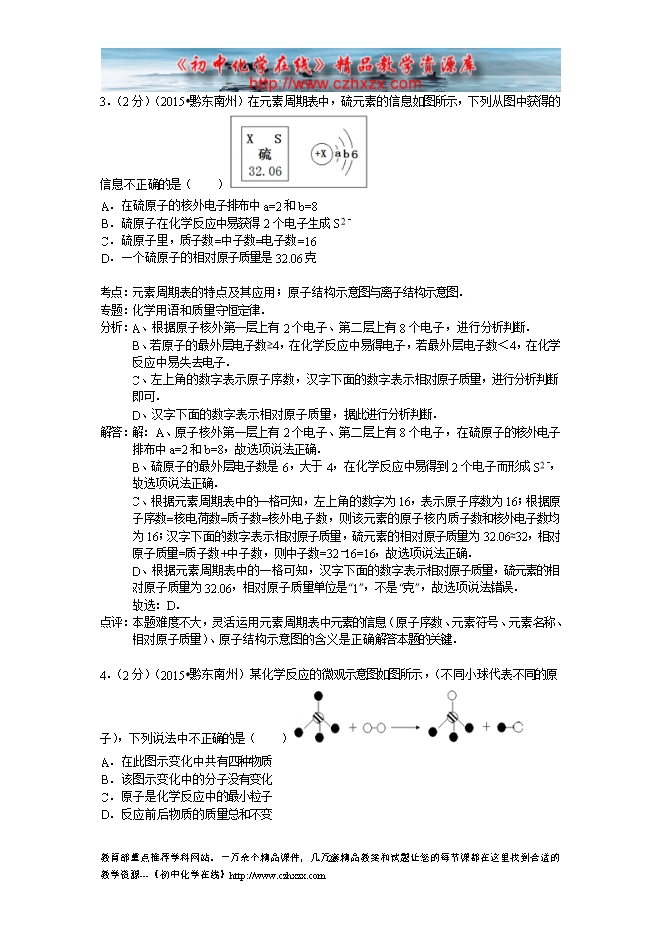 所属专辑: 《2015年各省市中考化学真题》专辑