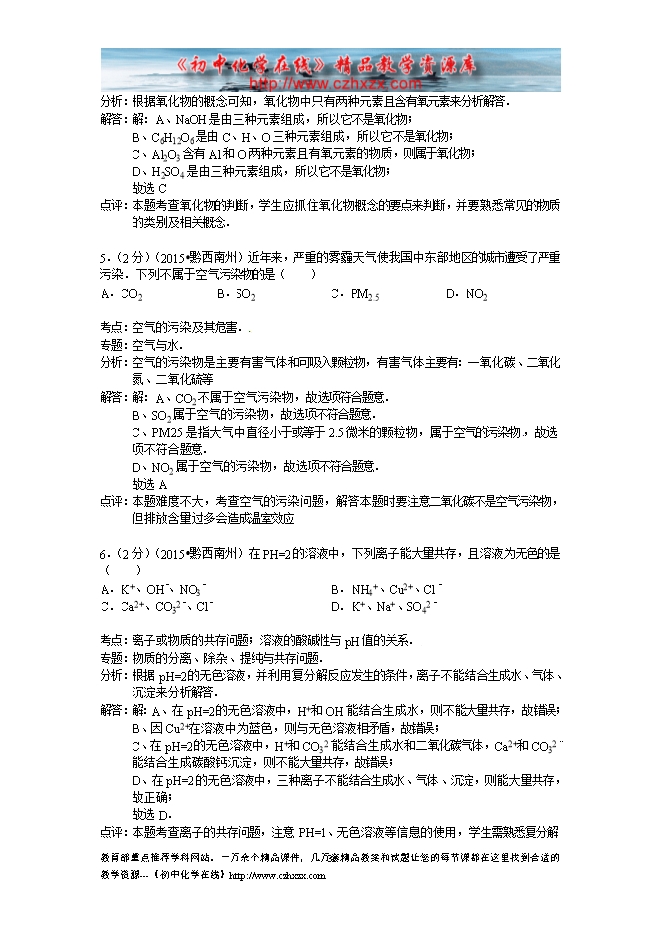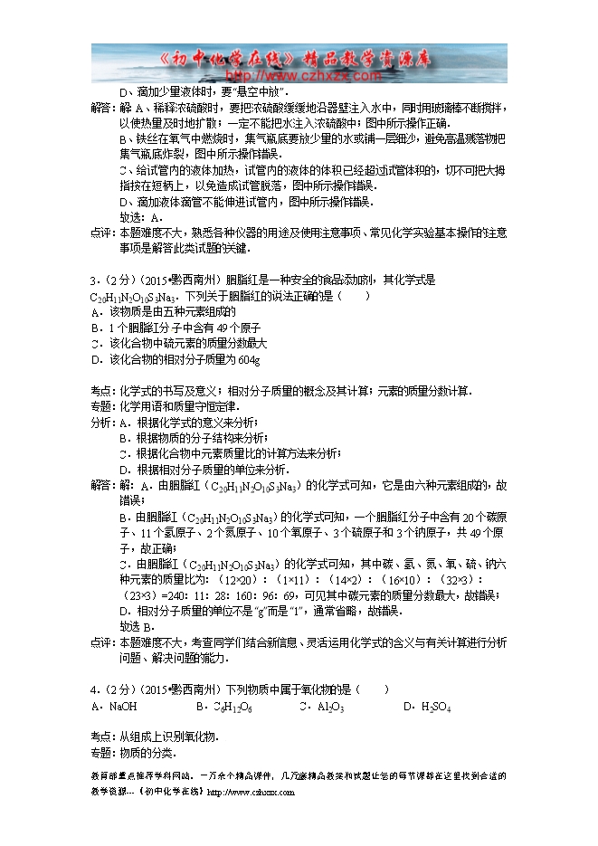 所属专辑: 《2015年各省市中考化学真题》专辑