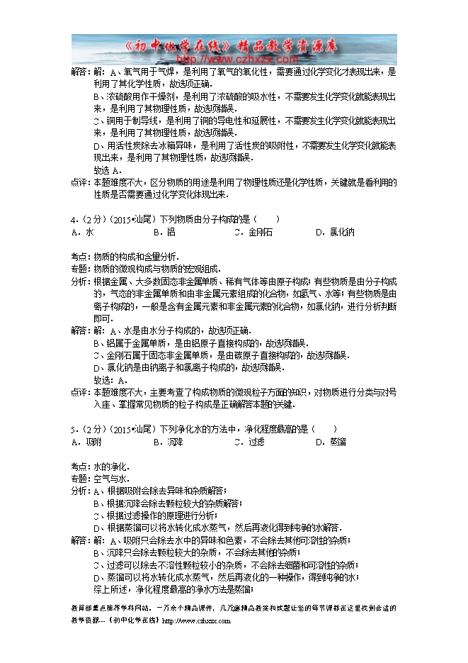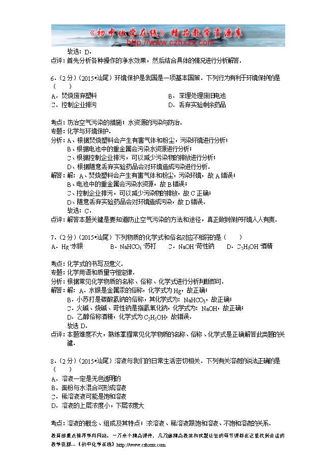 所属专辑: 《2015年各省市中考化学真题》专辑