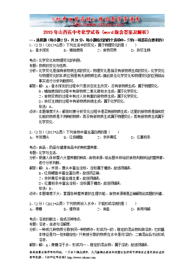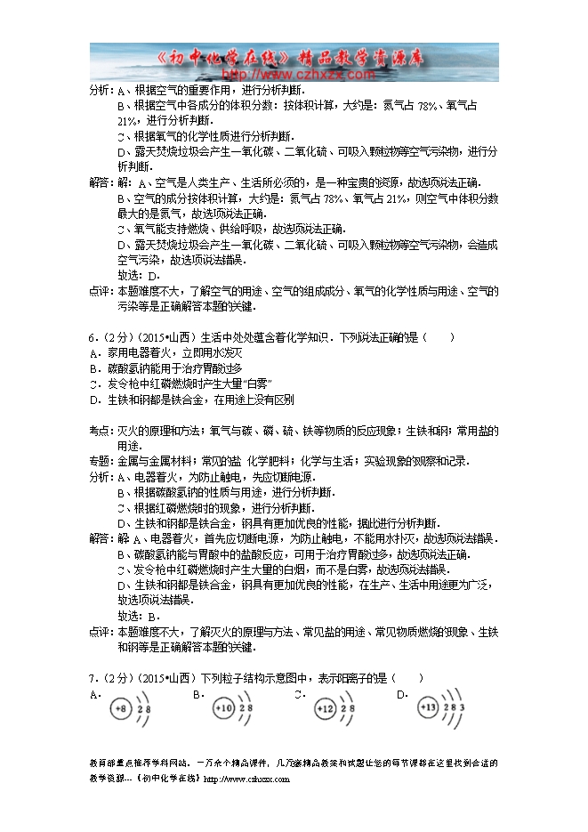 所属专辑: 《2015年各省市中考化学真题》专辑