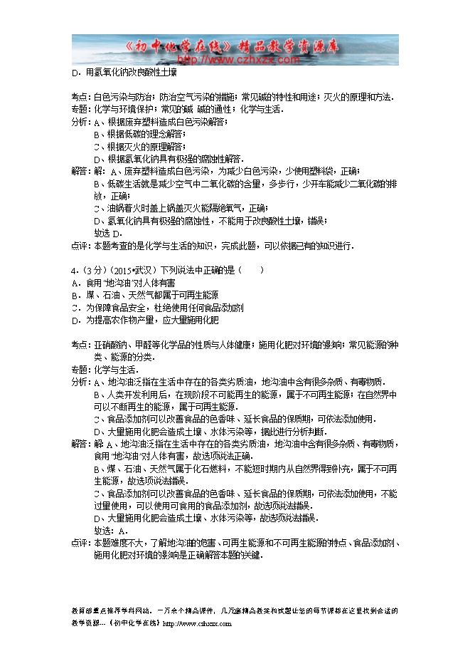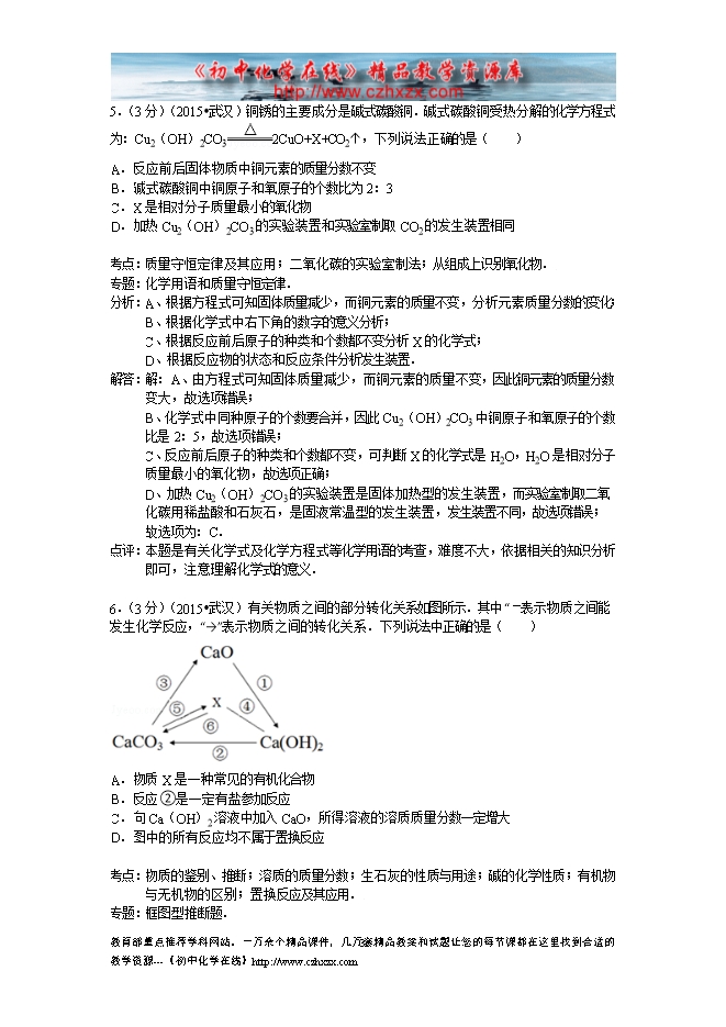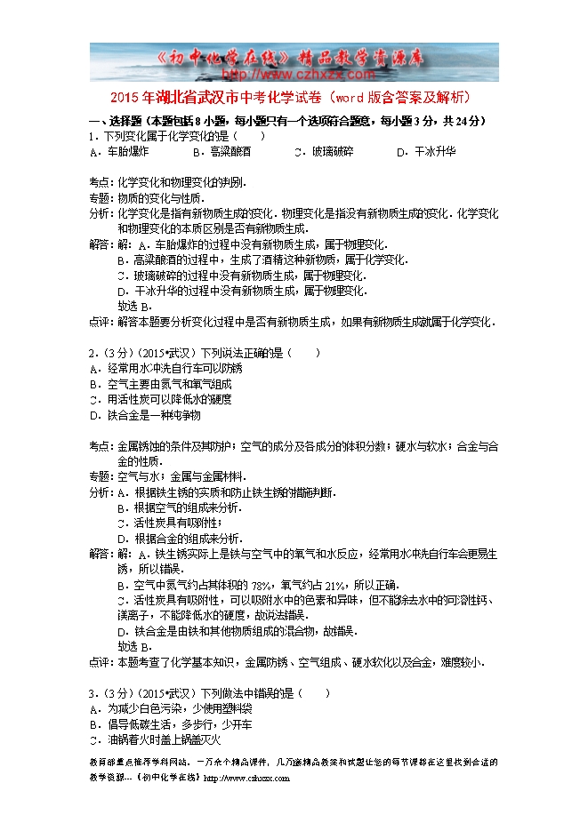 2015年湖北省武汉市中考化学试卷(word版含答案及解析)