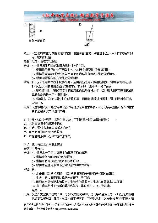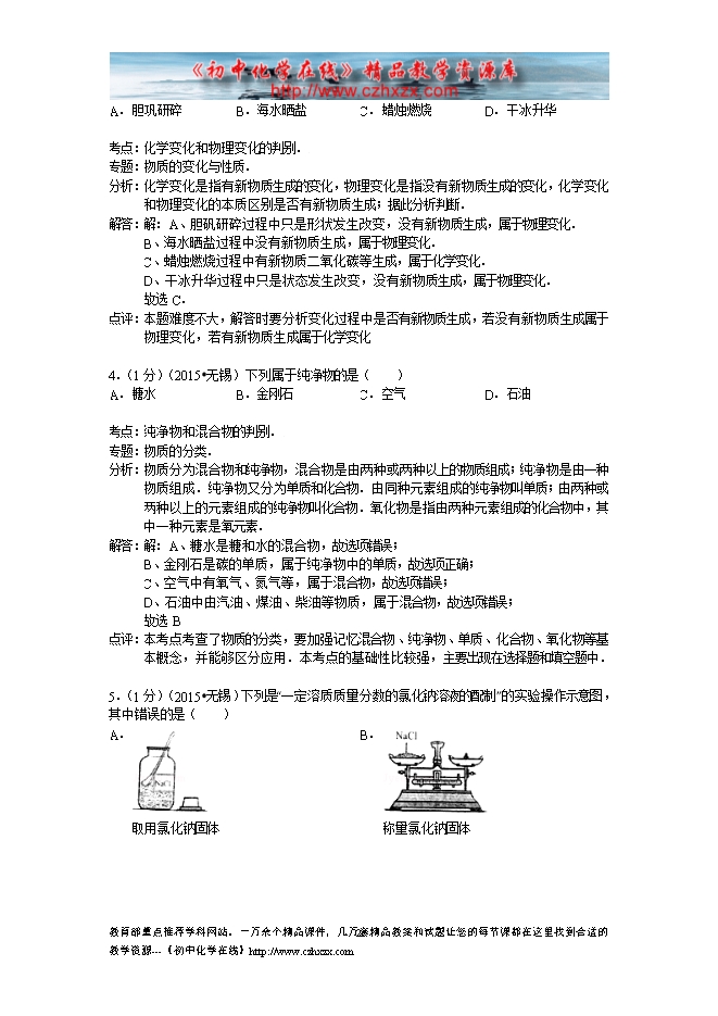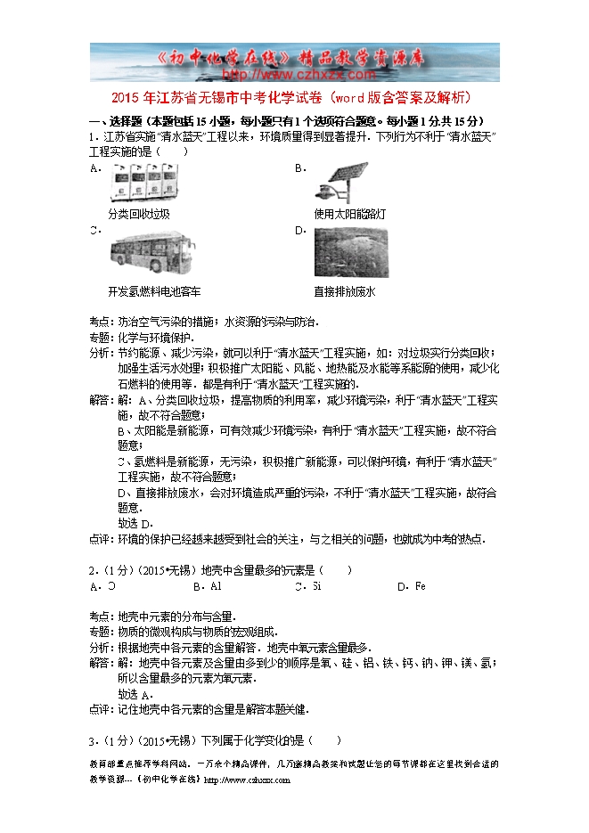 2015年江苏省无锡市中考化学试卷(word版含答案及解析)