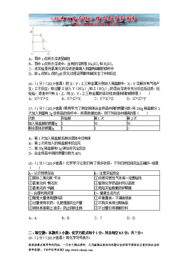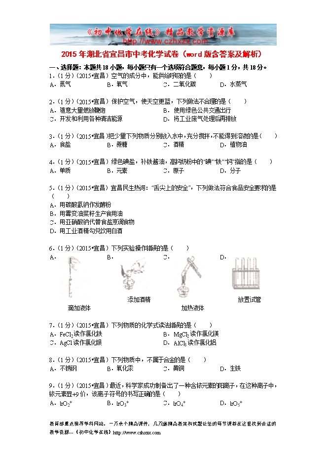 2015年湖北省宜昌市中考化学试卷(word版含答案及解析)