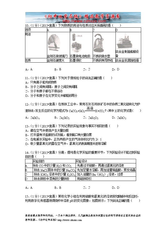 所属专辑: 《2015年各省市中考化学真题》专辑