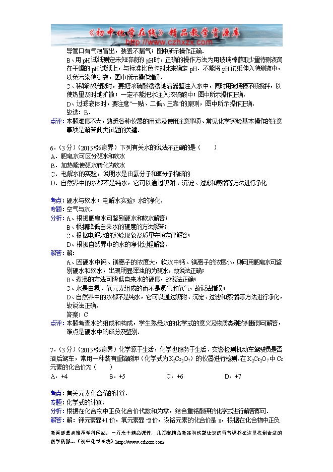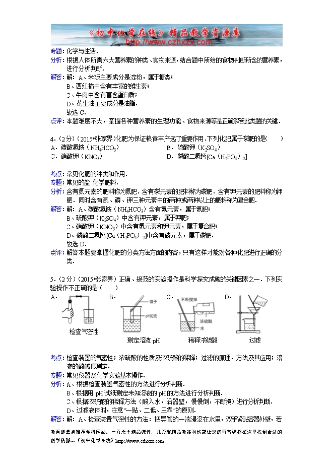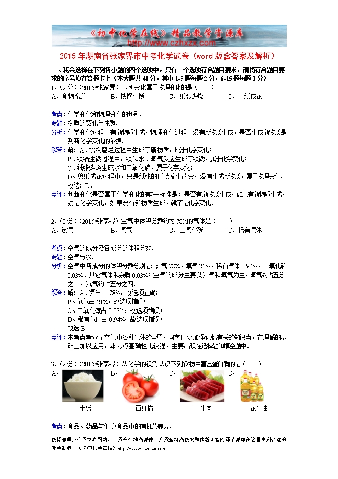 2015年湖南省张家界市中考化学试卷(word版含答案及解析)