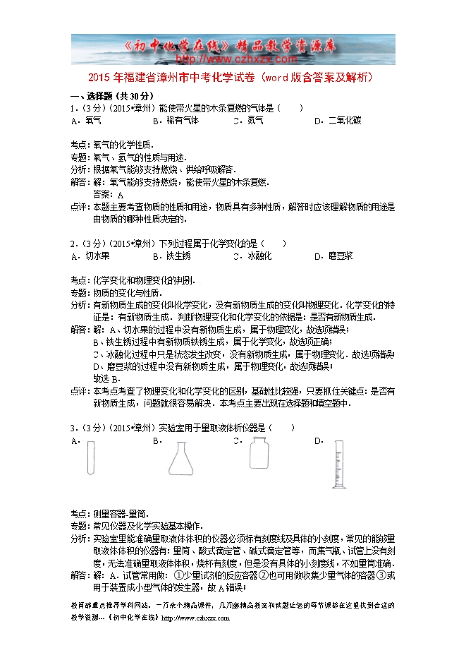 2015年福建省漳州市中考化学试卷(word版含答案及解析)