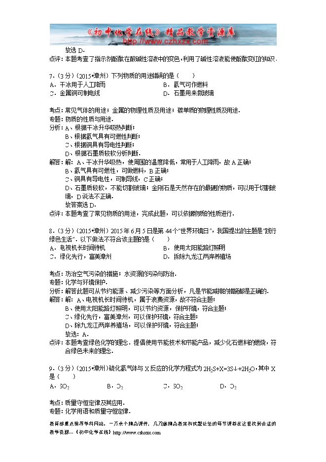 所属专辑: 《2015年各省市中考化学真题》专辑