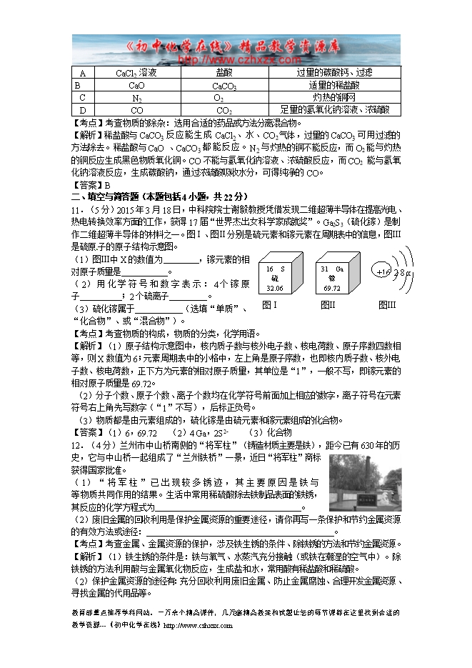所属专辑: 《2015年各省市中考化学真题》专辑