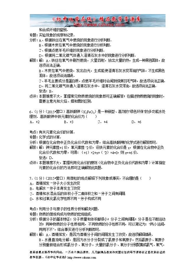 所属专辑: 《2015年各省市中考化学真题》专辑