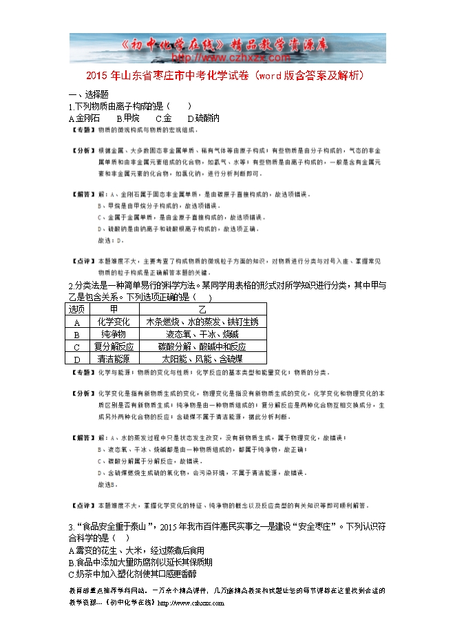 2015年山东省枣庄市中考化学试卷(word版含答案及解析)