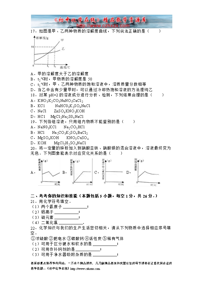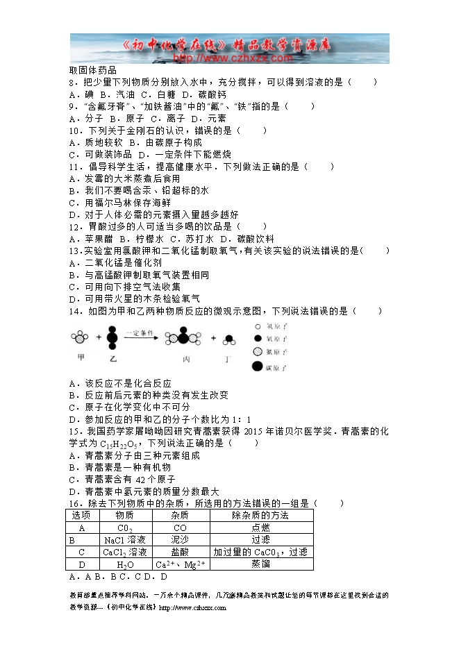 所属专辑: 《2016年各省市中考化学真题》专辑