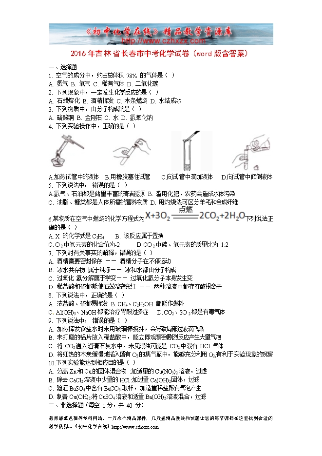 2016年吉林省长春市中考化学试卷(word版含答案)