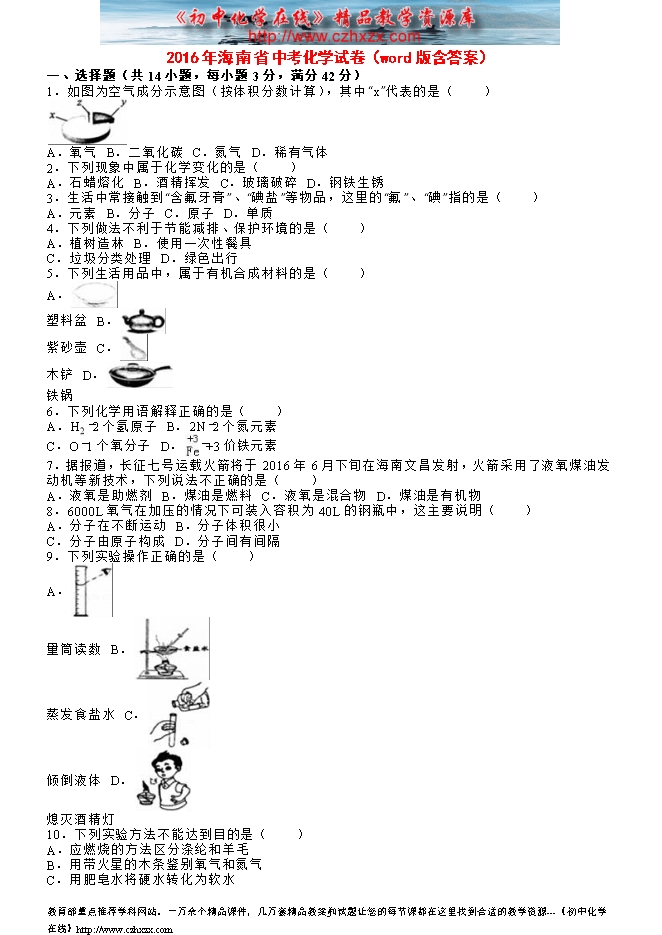 2016年河南省中考化学试卷(word版含答案)