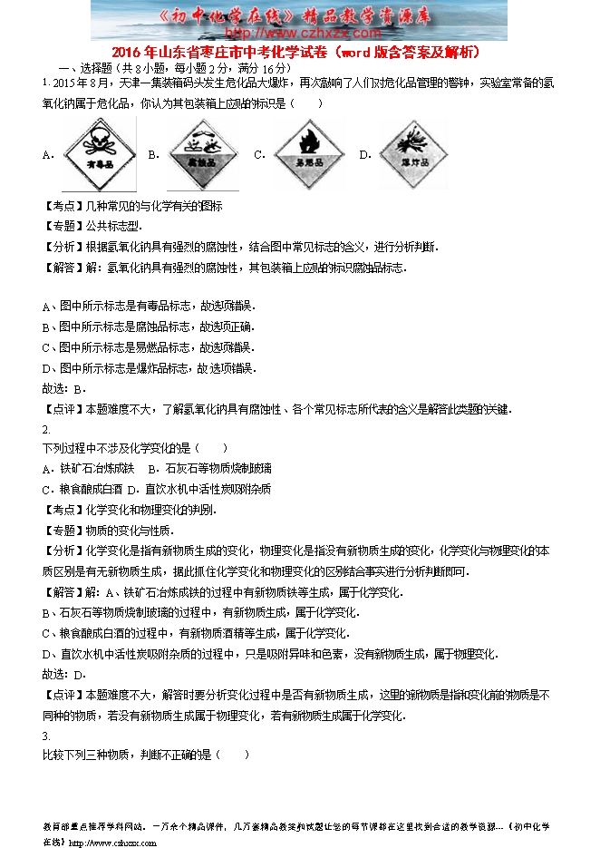 2016年山东省枣庄市中考化学试卷(word版含答案及解析)