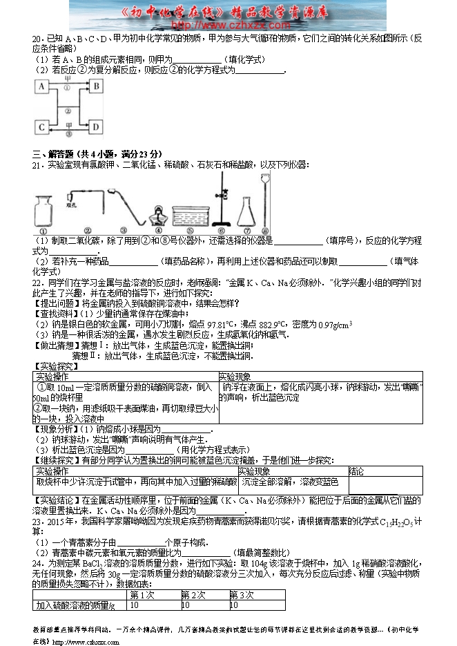 所属专辑: 《2016年各省市中考化学真题》专辑