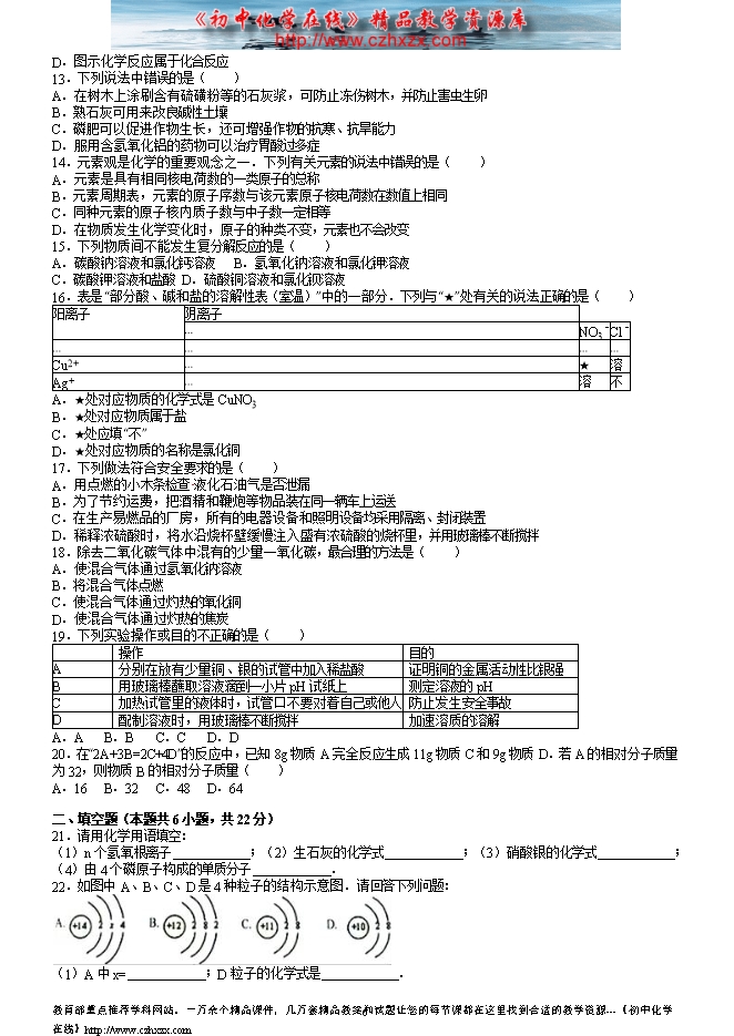 所属专辑: 《2016年各省市中考化学真题》专辑