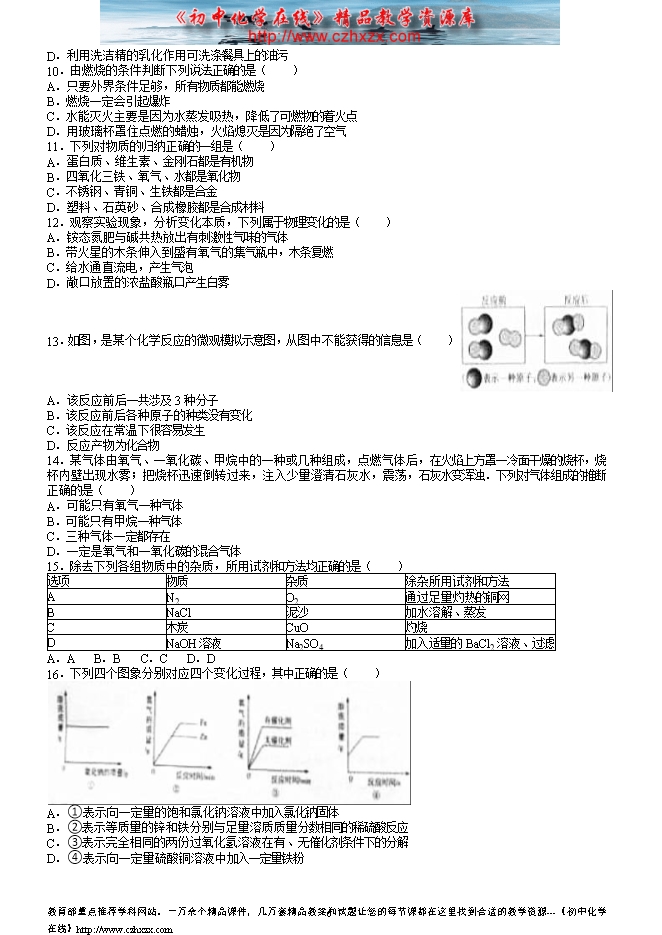 所属专辑: 《2016年各省市中考化学真题》专辑