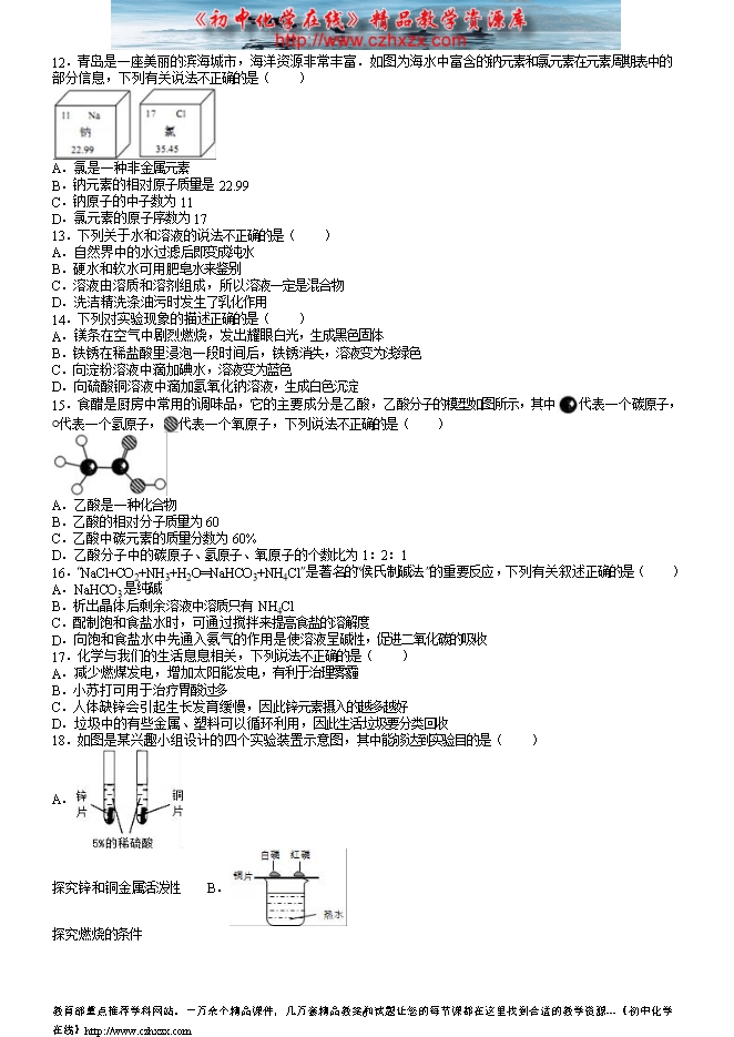 所属专辑: 《2016年各省市中考化学真题》专辑