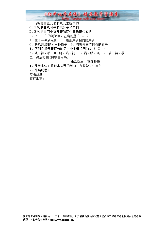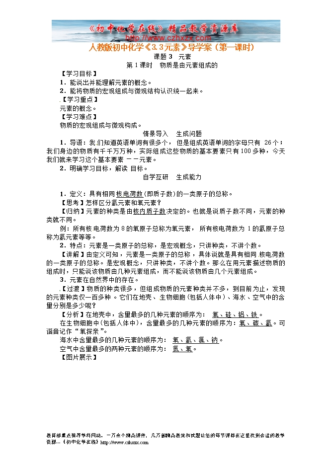 - 下一份资料:人教版初中化学《3.3元素》导学案(第二课时)
