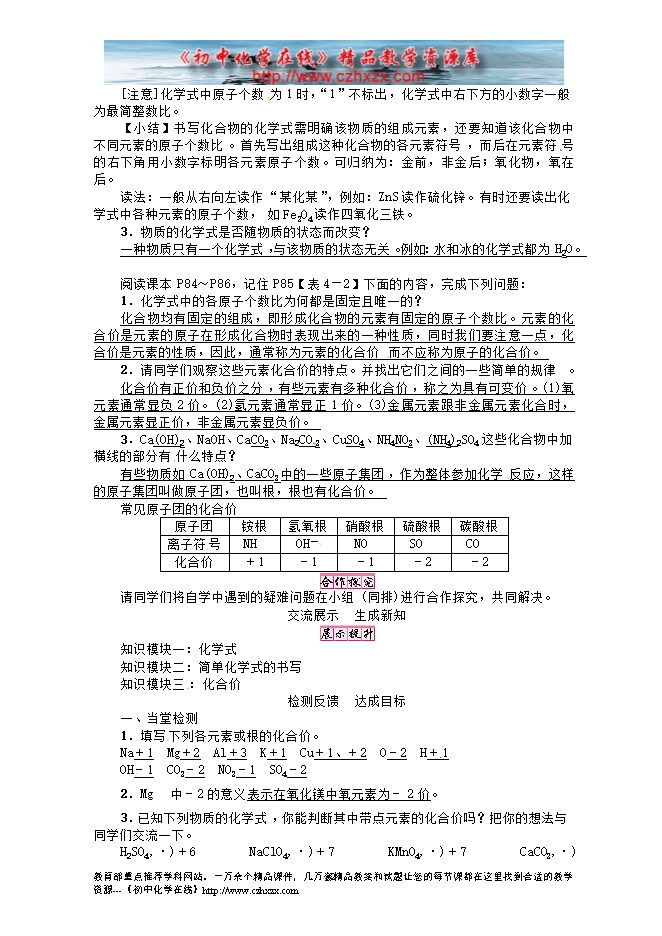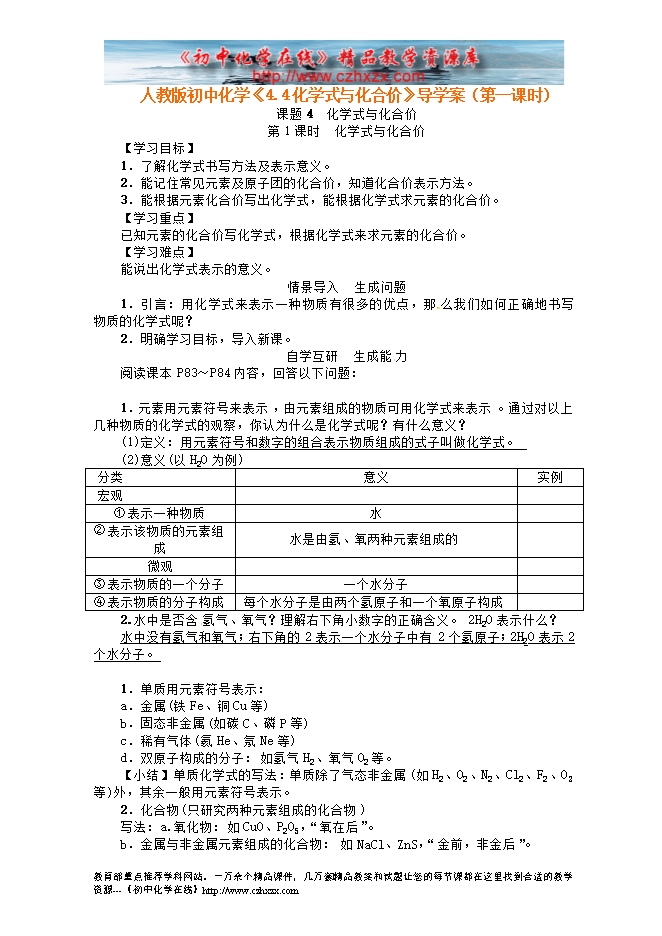 - 下一份资料:人教版初中化学《4.4化学式与化合价》导学案(第二课时)
