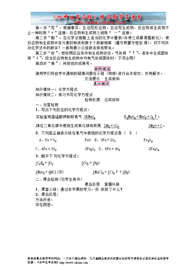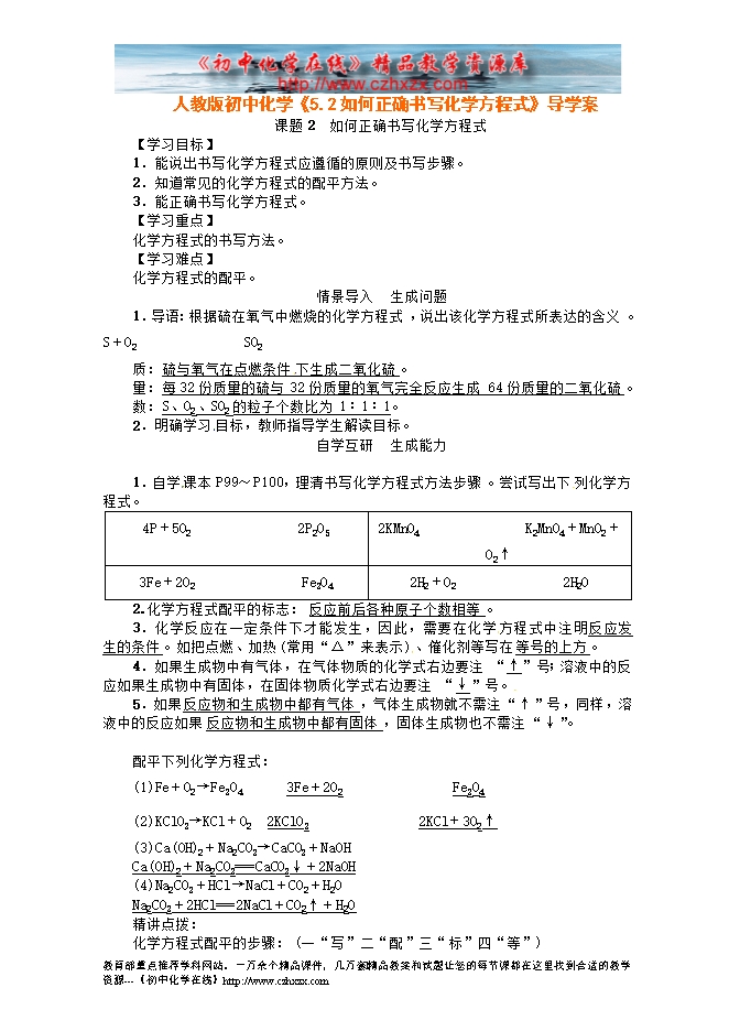 人教版初中化学《5.2如何正确书写化学方程式》导学案
