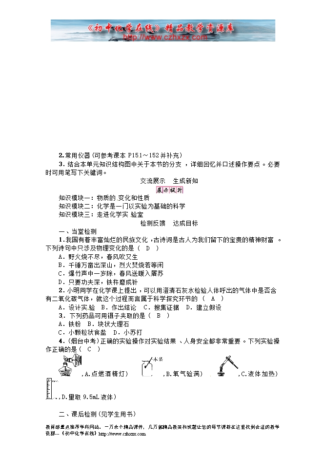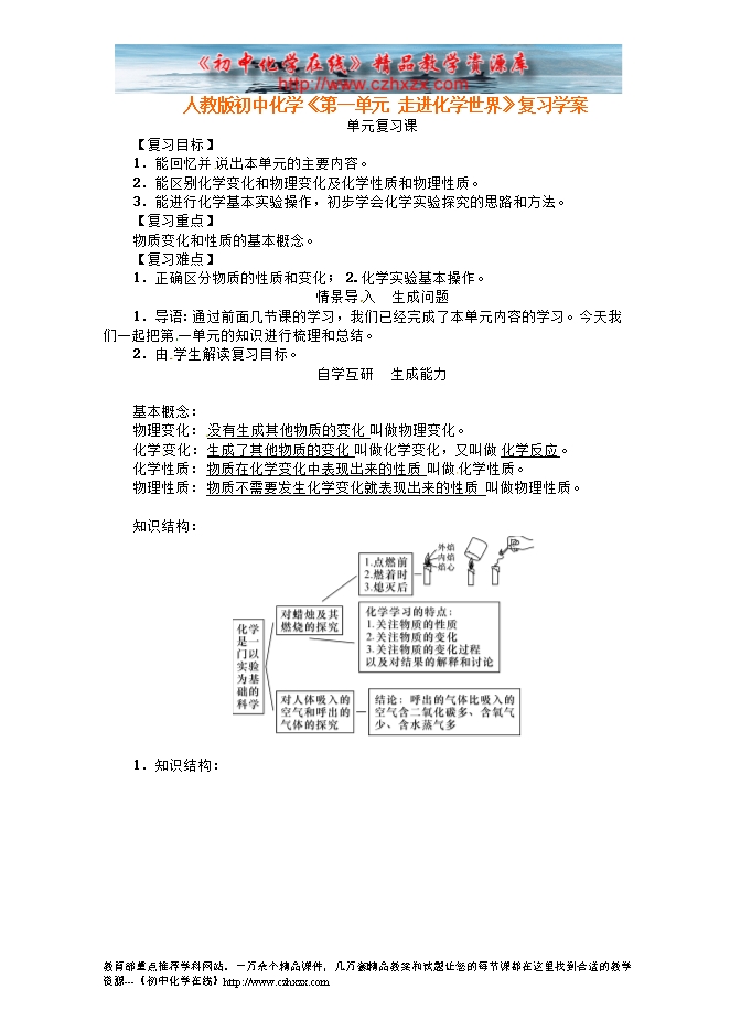 人教版初中化学《第一单元 走进化学世界》复习学案